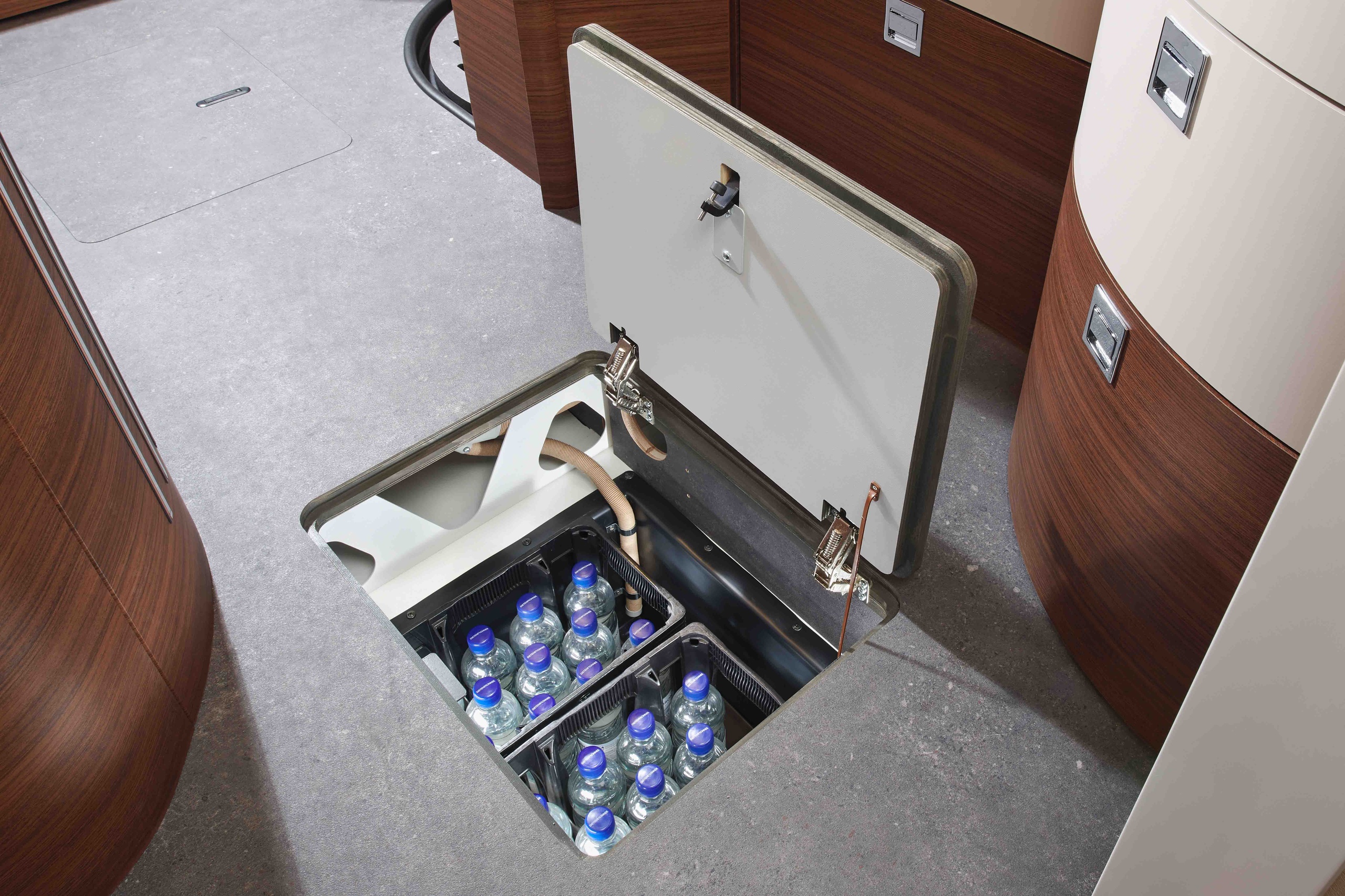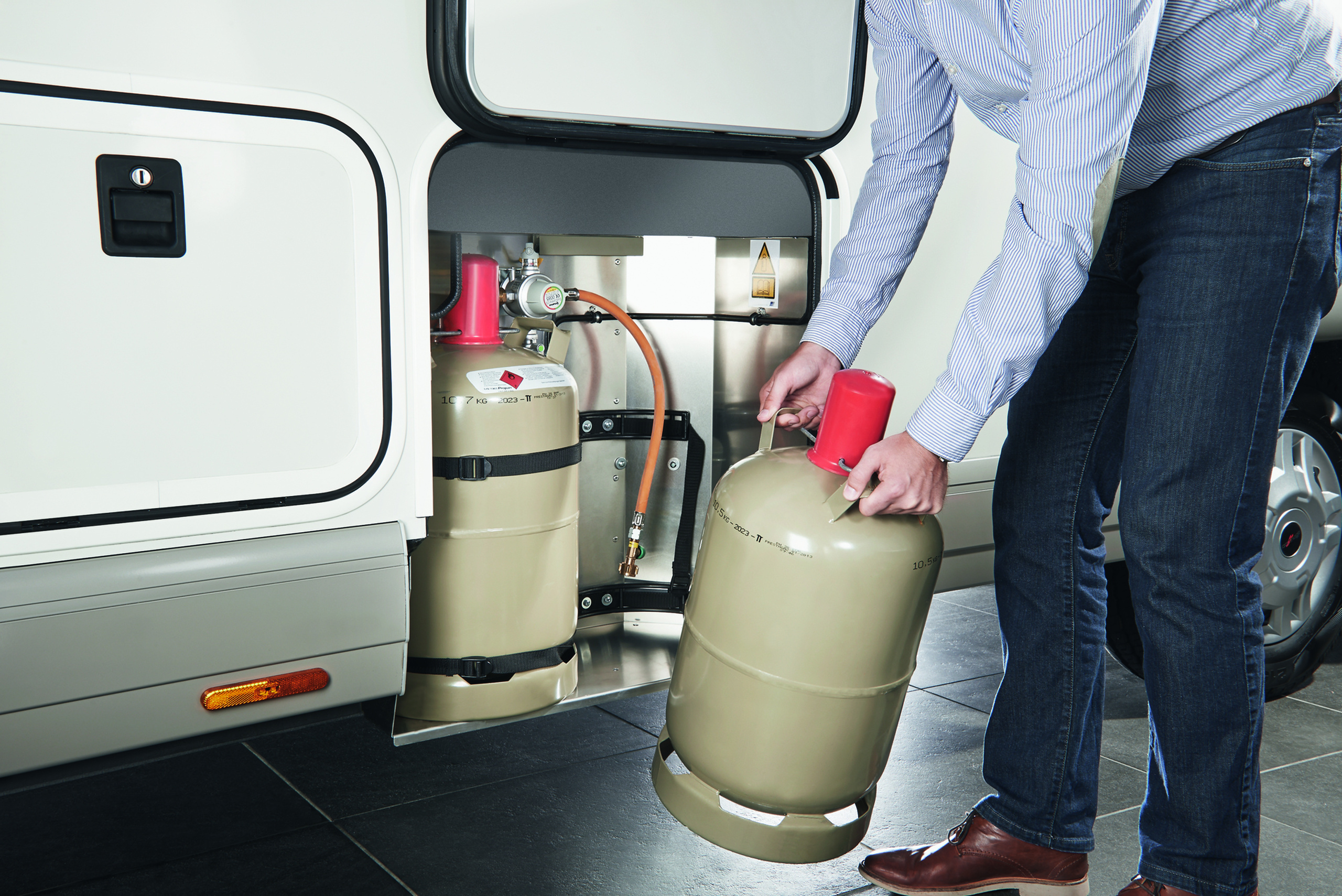 - Gas-Außenanschluss hinter Doppelboden-Außenstauraum Beifahrerseite